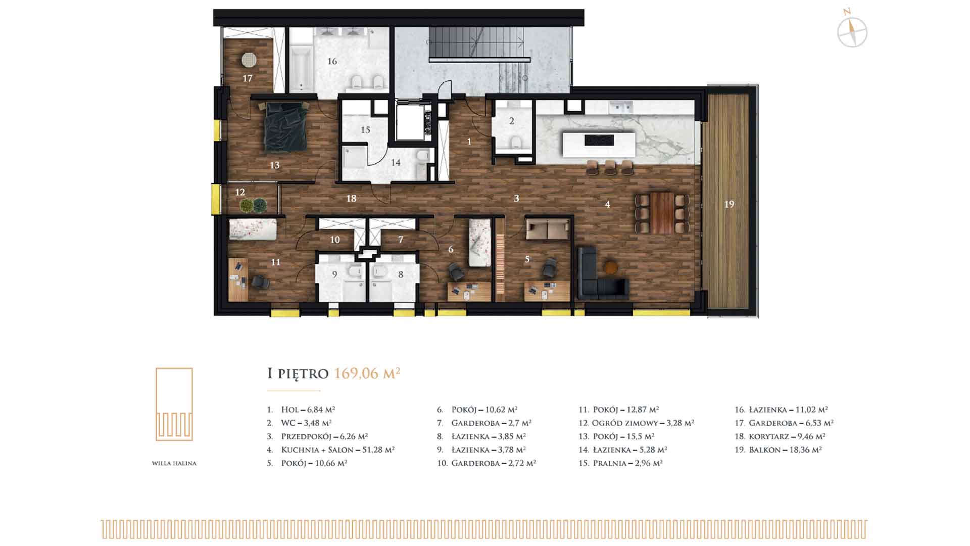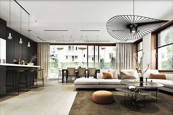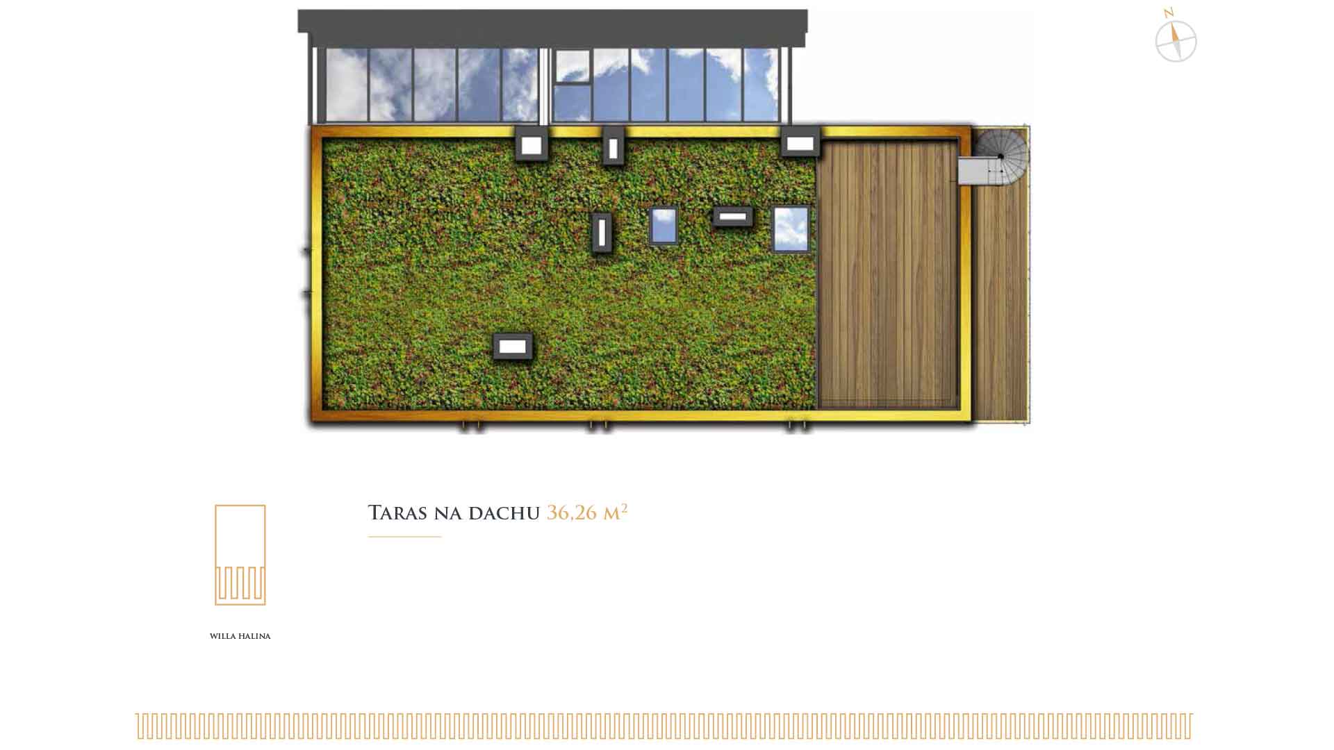 Każdy apartament posiada bardzo duży balkon lub taras. Ogromne przesuwne drzwi typu HS łączą bezpośrednio balkon lub tarasy z wnętrzem lokali. Takie rozwiązanie ułatwia aranżacje wnętrza, jednocześnie otwierając mieszkania na zieleń i przestrzeń. Dodatkowo apartamenty zaprojektowano tak, aby zapewnić maksymalną funkcjonalność przestrzeni np. poprzez czytelne oddzielenie części dziennej od prywatnej każdego z nich. Jednocześnie układ oraz szerokość lokali pozwala na maksymalną możliwość aranżacji przestrzeni. Przestronne pomieszczenia i panoramiczne okna to kolejne atuty Willi Halina. Wysokość apartamentów /ponad 3 metry/ dodatkowo daje poczucie komfortu i bezpieczeństwa. Warto nadmienić, że każdy z apartamentów to odpowiednik domu jednorodzinnego o powierzchni ok. 280 m2. Powyższe wynika z faktu odjęcia od domu jednorodzinnego powierzchni garażów, komunikacji oraz pomieszczeń technicznych.